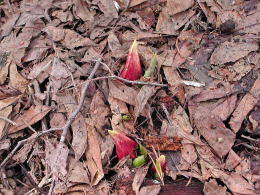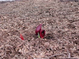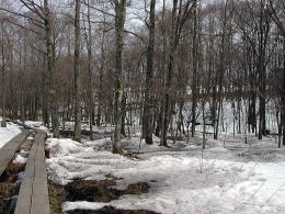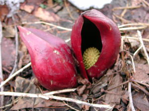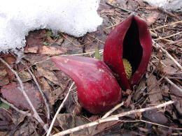 ザゼンソウが顔を覗かせるのは
