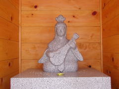 形が法衣を着て座禅を組む