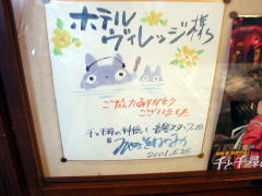 ホテルのロビーに宮崎監督からの感謝の色紙が飾ってありました。 |