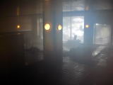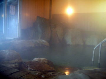 | ただし、温泉浴槽は1つだけ。2つの岩風呂のうちの片方とジャグジーは真湯です。給湯量の関係でしょうか。ホテルのHPで確認したところ、「当館は、泉温94度という万代鉱源泉を利用しているために、露天風呂は加水、内湯の二つの浴槽の内、ひとつの浴槽は、湯量調整により加水なしの源泉掛け流し、そしてもうひとつの浴槽とジャグジーは、肌の敏感な方のために真湯とさせていただいております」(原文のまま)とありました。かけ流しの源泉浴槽はかなりの広さなので満足できます。 |