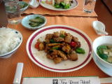 | 湯上がり後はホテル玄関をでたところにある中華料理「上海」へ。ランチタイムの中華定食(3種類)は安くて美味!おすすめです。 |