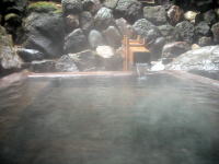 | 露天風呂は3,4人が入れる程の大きさ。泉温の高い草津の湯も、露天なら長湯ができます。 |