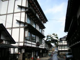 | せがい出し梁り造りとは西上州の養蚕農家特有の建築様式で、張り出した軒、大きな白壁と黒い梁が美しい景観を創り出しています。創業当時の草津はこのせがい出し梁り造りの街並みだったそうで、それをいち早く再現したのが大阪屋です。 |