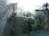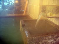 | 源泉はすぐ近くにある湯畑源泉。源泉温度は55℃と高温ですが、湯畑の長い樋を通り、さらに湯滝を落下することによって、湯舟に到達する時点では43℃にまで下がり、かつまろやかな泉質になります。 |