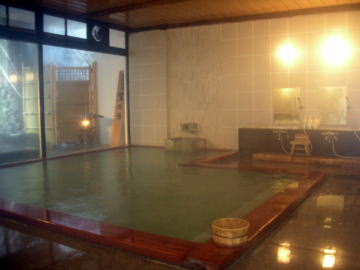 | 男性用が「君子の湯」、女性用が「白玉の湯」と名付けられている大浴場は、草津を代表する名旅館にふさわしく、広々として堂々たる趣です。 |