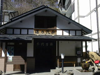 千代の湯は滝下通り沿い、老舗旅館、大坂屋の隣りにあり、よく目立つこともあって、観光客にも人気の高い共同湯。
