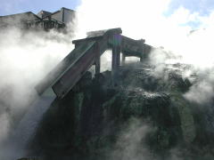 7本の木樋は湯の花を沈殿させて採るため