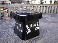湯畑の石柵には草津を訪れた(「来草」とい