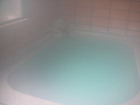 立ち寄ったのは日曜の午前10時半。朝の混雑が一段落したところのようで、しばし独り占め。湯舟に体を沈めると新鮮な湯がドバドバと溢れました。 |