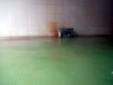 | 湯舟にあふれる湯は透明な黄緑色をしています。石湯と同じ4号源泉を使っていますが、大湯源泉(38.9℃)を加えているので、その微妙な混合具合がこの色を作っているのでしょうか。 |