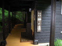 | 昭和9年、医者に見放された幼少の先代館主がこの鉱泉に入ったところ病が治り、そのことから「神乃湯」と名づけたそうです。これまでの経験上「いい温泉に浸かると眠くなる」のですが、この鉱泉の威力は凄まじく、入浴後ものすごい睡魔に襲われ、必死でハンドルを握りました。 |