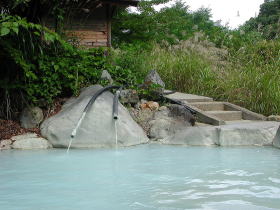 | 混浴ですが、開放的なだけに女性には入りづらいようです。おまけに女性用の脱衣所からは男性用脱衣所の前を回りこんで来なければならず、実質的には男性専用でしょうか。 |