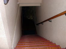 薄暗い階段を下へ下へと進みます。風呂場が低いところにあるのは自噴の湯をそのまま湯舟に注ぐため。いいお湯にめぐり会える予感・・・。 |