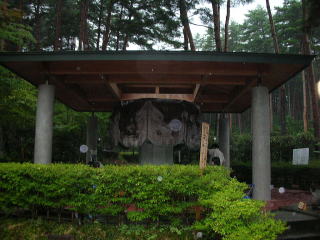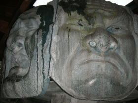 | 八つの顔は喜怒哀楽を表わしているといいます。この八面大王のモニュメントは、1985年「魅力ある温泉地づくり事業」により作成されたものだそうです。 |