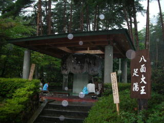 「八面大王足湯」は穂高温泉郷のシンボルとして2003年に完成した足湯である。 |