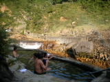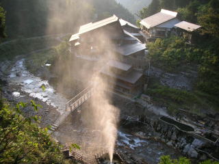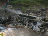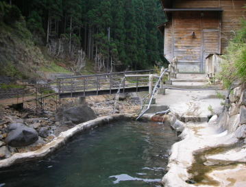 | 男女別の内湯は長い階段を下りた先の川べりの湯小屋にあります。 |