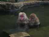 | 湯舟からはサルが歩く姿が見えます。。昭和18年に好奇心の強い子ザルが初めてここに入浴して以来、昭和42年に野猿公園に専用の露天風呂ができるまではサルもこの野天風呂に入りに来ていたそうです。 |