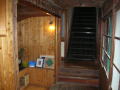 | これぞ秘湯の一軒宿という館内。洗面所もトイレも共同です(1つだけウオッシュレットを発見)。屋根ではサルが遊んでいました。 |