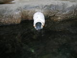 湯舟には数か所から左の写真のように源泉が注ぎ込まれています。