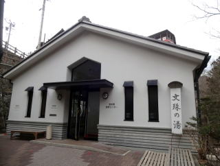 共同浴場「文殊の湯」は2000年に建て替えられた蔵造りのおしゃれな外観。入浴料は大人300円ですが、鹿教湯温泉の宿泊客は宿に言えば200円で入浴券を購入できます。 |