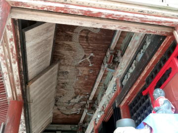 | 内陣の天井には龍が描かれています。かつてこの龍が夜な夜な五台橋へ水を飲みに出てくるという噂が立ち、首を切って新たに描き直したという伝説もあるとか。 |