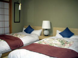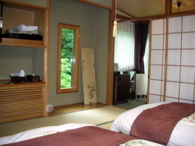 予約したのは1万6千円の部屋(旧館?)なのですが、「空いている時にはワンランク上のお部屋にお通しします」との言葉通り、1万8千円の部屋に案内してくれたようです。 |