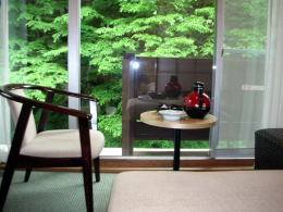 お湯に入って、森林浴をして、ごろりと横になって本を読むうちに夢の中・・・最高の贅沢です。 |