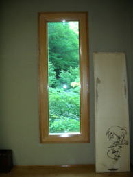 自然を借景にした掛け軸風の切り窓。 |
