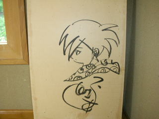 | さらさらと落書き風にサインした白土三平さんも粋ですが、その心境を感じ取り、後生大事にロビーに飾ったりすることなく、部屋にさりげなく置いておく宿の計らいもまた粋です。 |