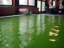 そして、この色・・・まるでバスクリーンを入れたような緑色の湯。