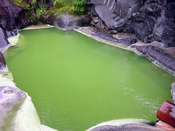 この温泉がなぜ緑色に濁るのかは解明されておらず、その日の天気や気温によって黄緑がかった透明になったり、乳緑色になったりもするそうです。