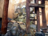 以前は浴室の仕切りが北アルプスを模した壁面になっていましたが、その一部が記念碑のように残っています。 |