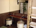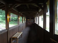 2008年の暮れに完成した浴場です。談話室の奥の扉を出て長い通路を歩きます。冬は通路の側面がビニールシートで覆われますが、夏場はさわやかな風が抜けます。 |