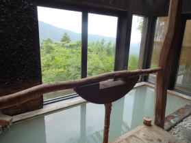 山の木々を見下ろしながら・・・いい湯です。 |