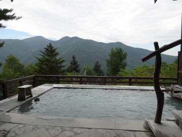 | もう一つの露天風呂より数メートル高い位置にあるので眺めはさらに素晴らしい。「天空の露天風呂」と名付けてもいいくらいです。 |