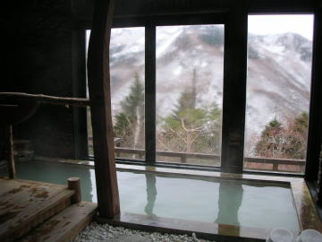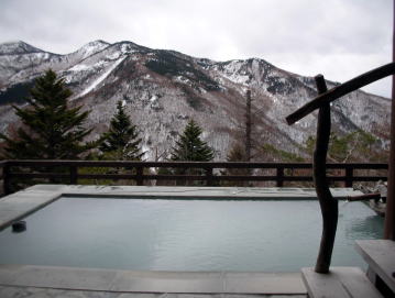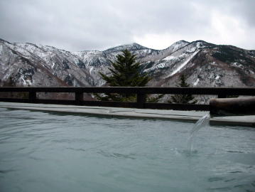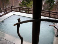 | 内湯を出るとまた一味違った世界が広がっています。内湯に比べると温めなので長湯ができます。 |