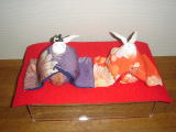 スの中に眠っていた着物をリメイクして、市松人形に着せています。 |