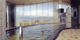 浴槽は内湯と露天風呂が男女別に2つ。いずれも循環湯ですが、盆地の彼方に美ヶ原や八ヶ岳、北アルプスの山々を望める展望自慢の温泉です。