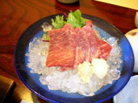 せっかくなので特別料理の霜降り馬刺しを