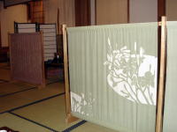 この布は切り絵をもとに染めたものだそうです。 |