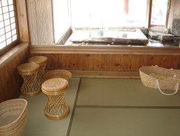 内湯はかけ流しと浴槽内循環の併用。石臼を利用した湯口から新湯が泉のように溢れています。 |