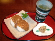方の郷土料理で、蕎麦粉で作った餅のこと。 |