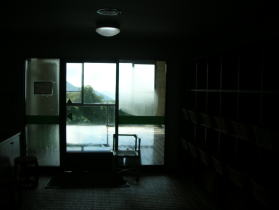 右の写真は脱衣所から撮影したものですが、オートフラッシュが作動せず、よくわからない写真になってしまいました。 |