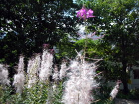 玄関脇には花を終えたヤナギランの穂綿が秋風に舞っています。 |