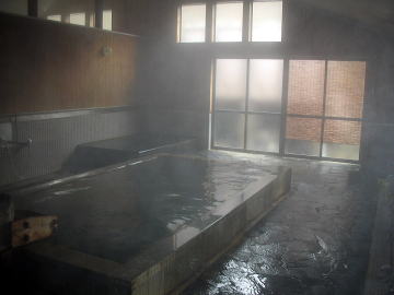 | 訪れたのは土曜日の午後2時。男湯は先客が8人ほど、皆さん顔見知りの地元の方らしく、互いに背中を洗い合ったり、世間話をしたりしていました。いつも銭湯代わりに入りにきているようです。浴槽の数と広さは男女とも同じ。上の写真は女湯で、こちらは空いていたそうです。 |