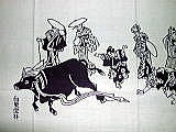昔、信仰心のない老婆が布を干していると、一匹の牛が角に布をひっかけて走り