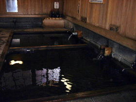 外湯の中で一番大きく、熱い湯とややぬるめ(といってもけっこう熱い)の二つの湯舟があります。