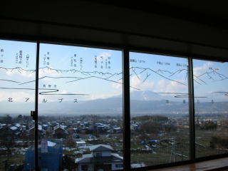 柵の向こうには北信五岳(左から飯縄山、戸隠山、黒姫山、妙高山、斑尾山)をはじめとする山々が一望できます。この日も雪を頂いた北信五岳がよく見えました。
