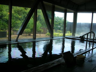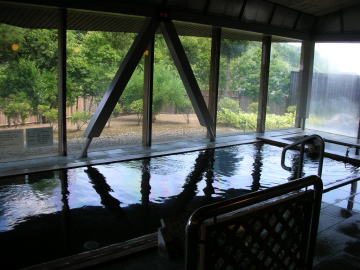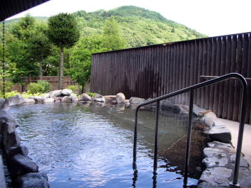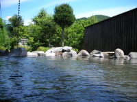 | 内湯も広いのですが、露天風呂もなかなかの広さです。周囲の緑が気持ちいい。 |
