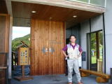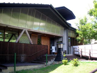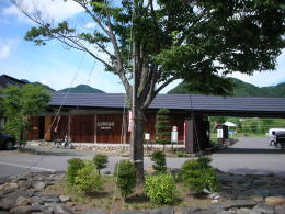 木造平屋建て(一部二階)の建物が、周囲の山々とよくマッチしています。